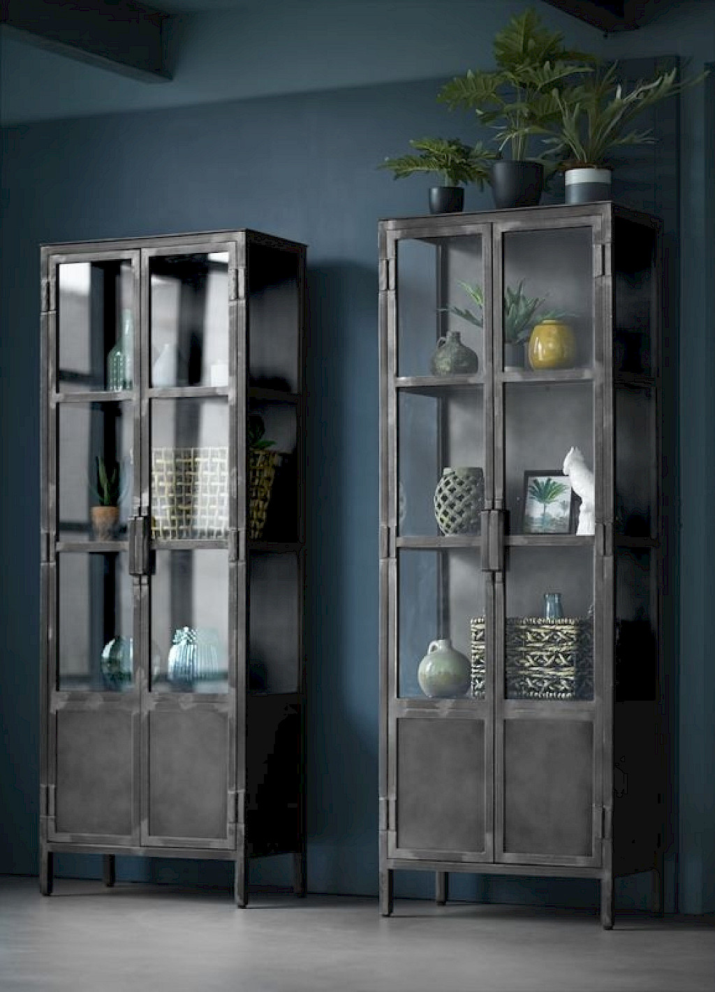 Uitgevoerd in metaal met glas, afgewerkt met Patina verf (antique finish), met 2 deuren.