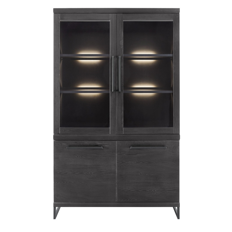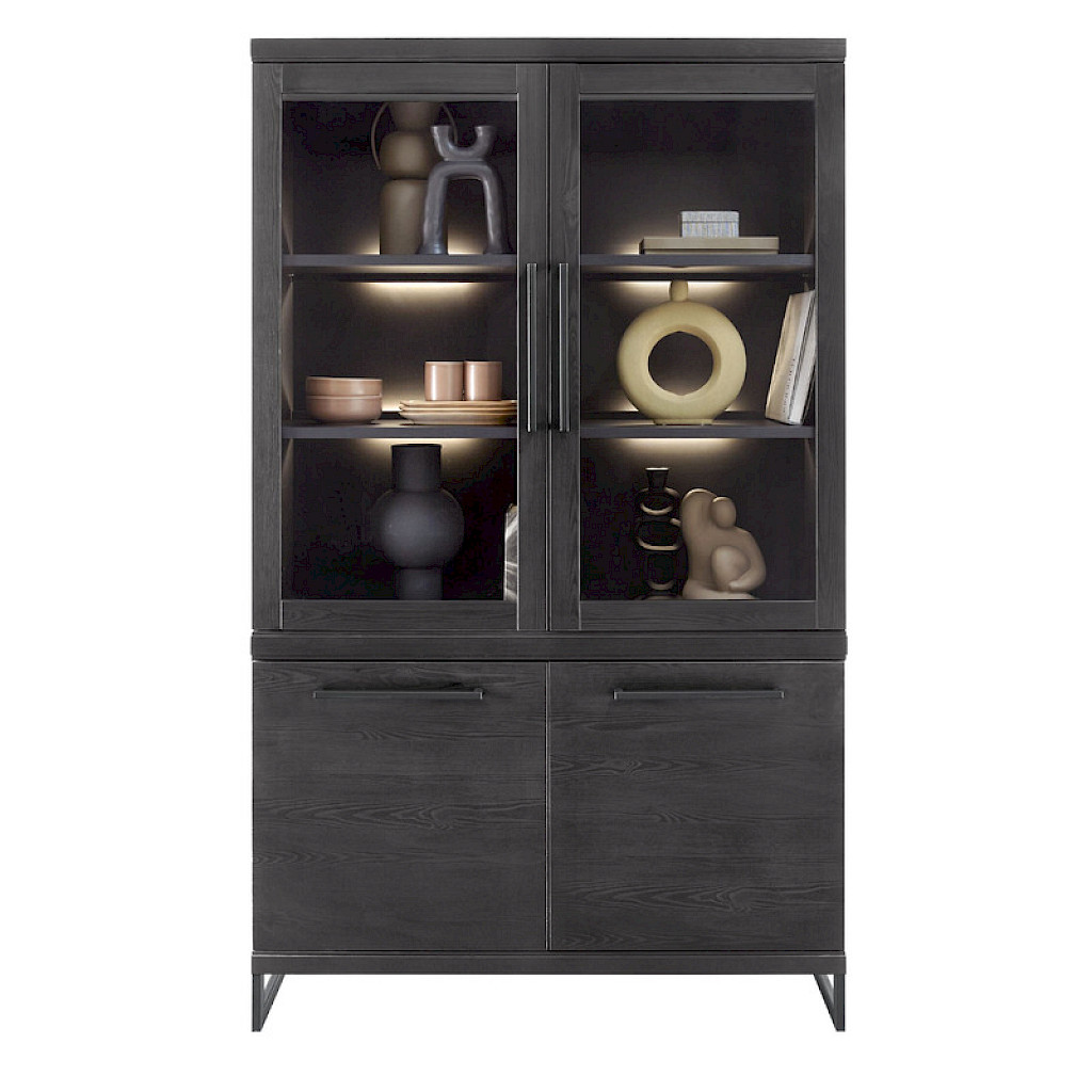 Deze vitrinekast is voorzien van 2 glasdeuren en 2 dichte deuren. Deze kast is dus zowel ideaal om je leuke accessoires of boeken een plekje in het zicht te geven als om spullen in op te bergen. De kast is 120 cm breed en 200 cm hoog. De deuren zijn voorzien van een soft-close systeem, hierdoor vallen deze automatisch zachtjes dicht. Achter de bovenste deuren vind je twee vaste legplanken en achter de deuren onder zit 1 legplank. De kast wordt geleverd in 2 delen, die voorgemonteerd zijn. De vitrinekast is uitstekend te combineren met de andere meubelen uit de Formia serie.