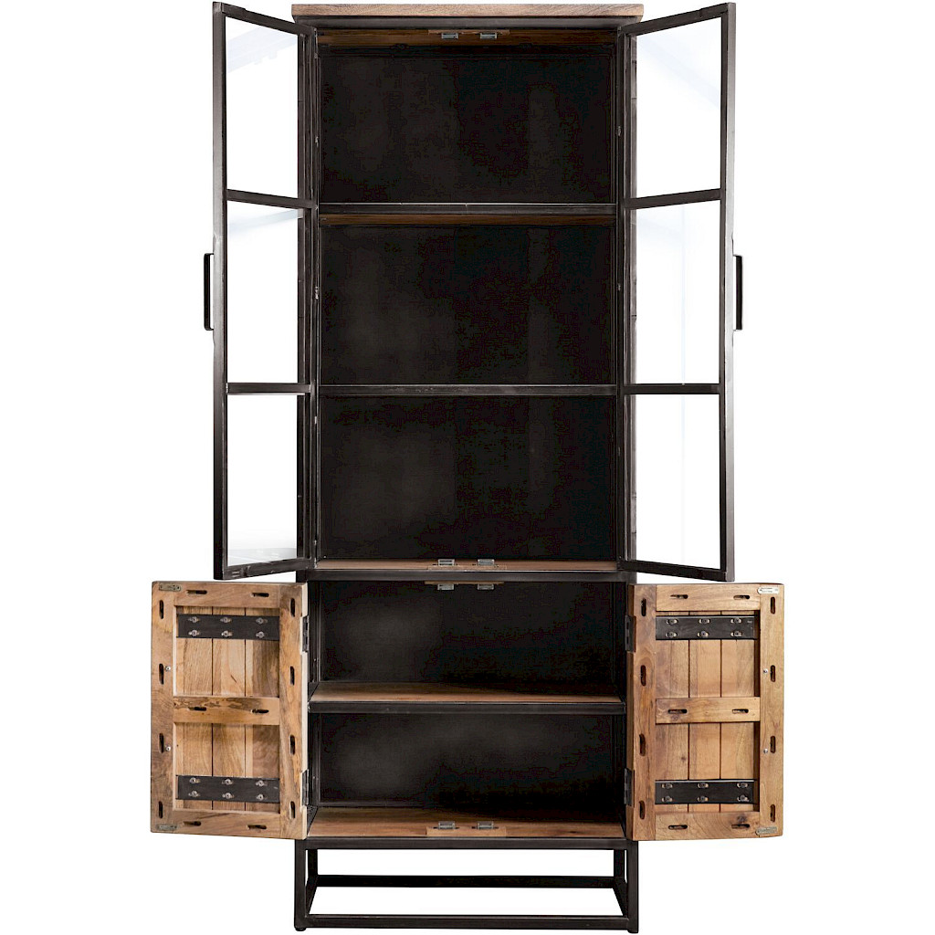 De kast heeft 2 dichte deuren en 2 glazen deuren. Deze kast is ideaal om je leuke accessoires of boeken een plekje in het zicht te geven, maar ook om spullen ongezien in op te bergen. Met een hoogte van 202 cm en een breedte van 76 cm, biedt deze vitrinekast veel opbergruimte. Achter de onderste deuren bevindt zich 1 vaste legplank en achter de glazen deuren bevinden zich er 2.