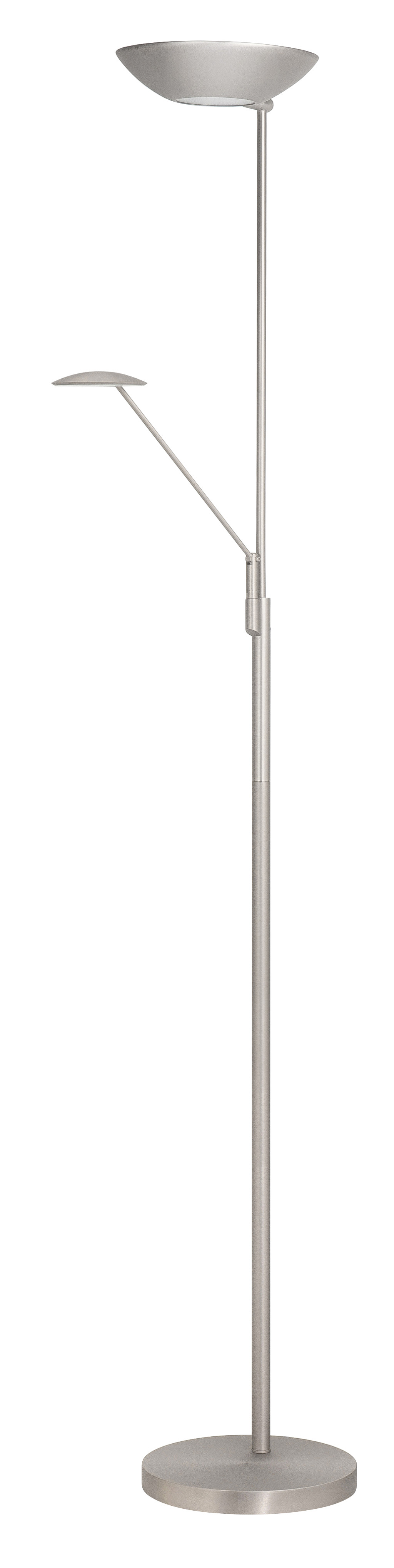 Vloerlamp Bilbao nikkel met spot en Ø 28 cm. Deze lamp wordt compleet geleverd met lichtbron(nen). Als lichtbron kan alleen een LED lamp worden gebruikt. Incl. dimmer.