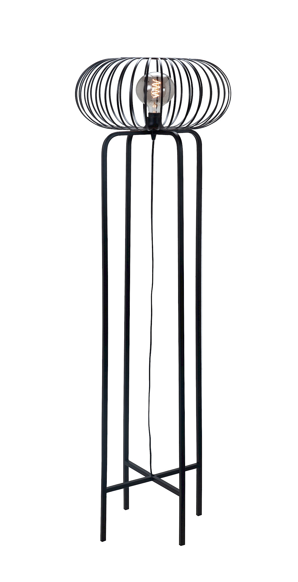 Vloerlamp Bolato zwart met 1 lichtpunt en Ø 50 cm. Deze lamp wordt geleverd zonder lichtbron(nen). Als lichtbron kan zowel een gloei- als LED lamp worden gebruikt. Incl. dimmer.