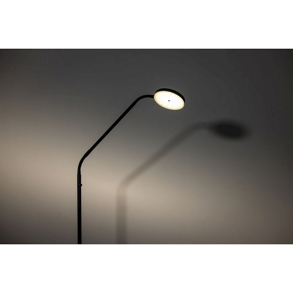 Uitgevoerd in zwart metaal, draadloos, oplaadbaar, met dimmer op stang en geïntegreerde lichtbron. (h) 166 cm