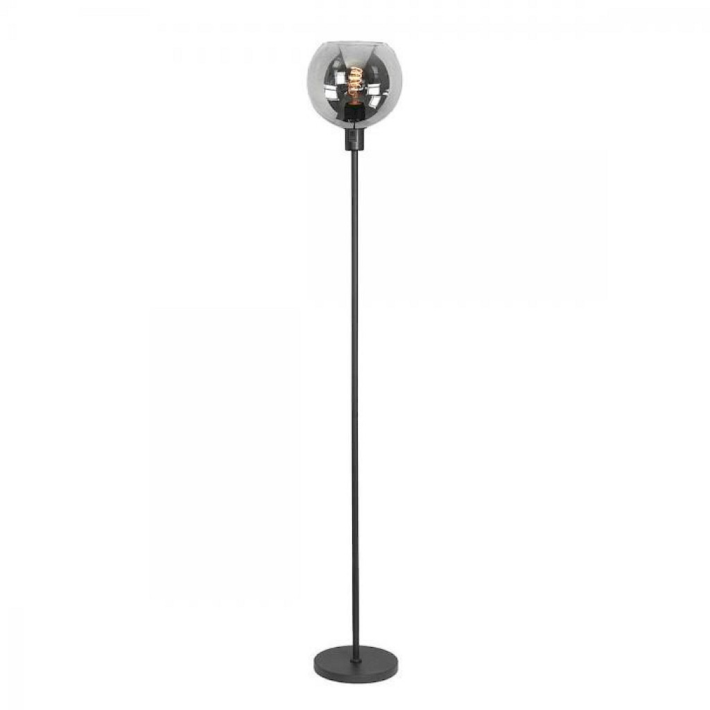 De vloerlamp is 155 cm hoog en heeft een diameter van 21 cm. Het glas heeft een diameter van 30 cm. De lamp is gemaakt van mat zwart metaal en rookglas. De lamp heeft een E27 fitting en wordt geleverd exclusief lichtbron. Op de lamp zit een aan en uit schakelaar.
