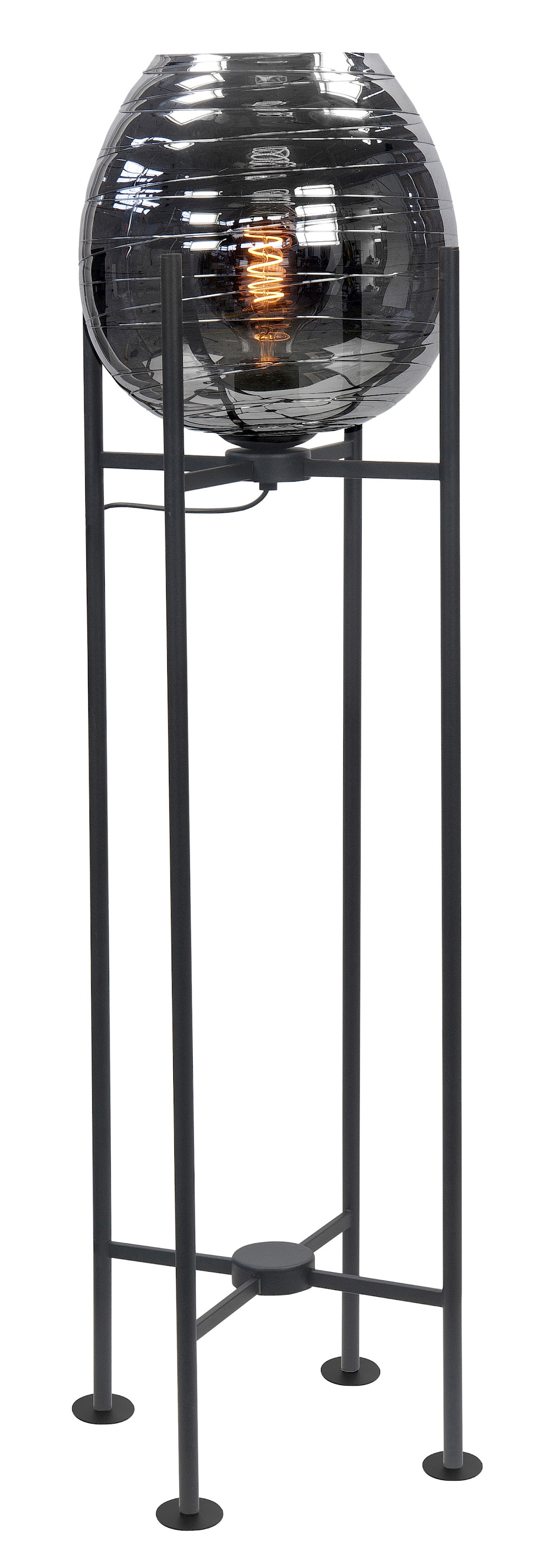 Vloerlamp Fantasy zwart + smoke glas met 1 lichtpunt en Ø 26 cm. Deze lamp wordt geleverd zonder lichtbron(nen). Als lichtbron kan zowel een gloei- als LED lamp worden gebruikt. Dimbaar via externe dimmer.