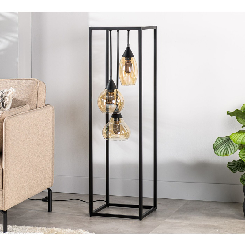 Vloerlamp frame amber glas 3-lichts - Lungo