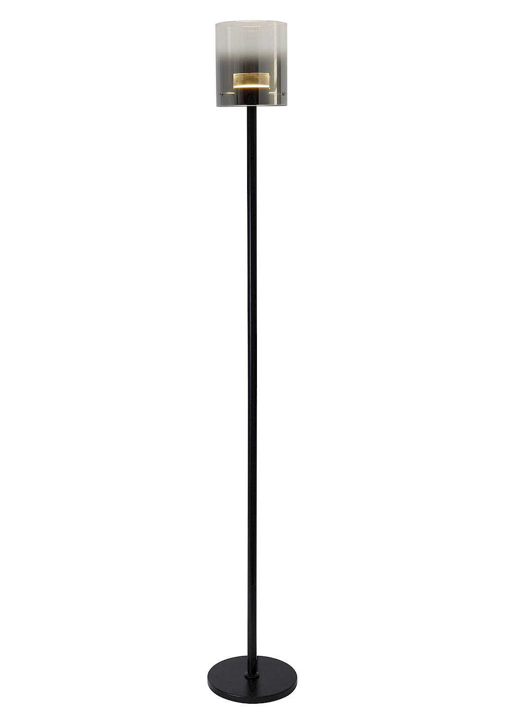 Vloerlamp Salerno zwart + smoke glas met 1 lichtpunt en Ø 22 cm. Deze lamp wordt compleet geleverd met lichtbron(nen). Als lichtbron kan alleen een LED lamp worden gebruikt. Incl. dimmer.