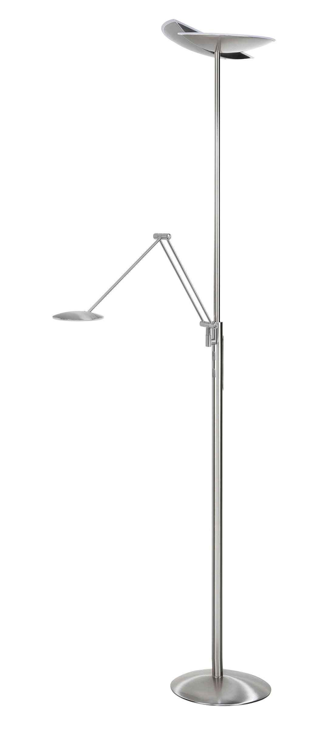 Vloerlamp Sapporo nikkel met spot en Ø 29 cm. Deze lamp wordt compleet geleverd met lichtbron(nen). Als lichtbron kan alleen een LED lamp worden gebruikt. Incl. 2 dimmers en 2 kleurschakelaars.