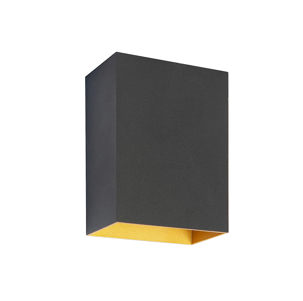 Wandlamp Eros zwart + goud met 1 lichtpunt en Ø 15 cm. Deze lamp wordt geleverd zonder lichtbron(nen). Als lichtbron kan zowel een halogeen- als LED lamp worden gebruikt. Dimbaar via externe dimmer.