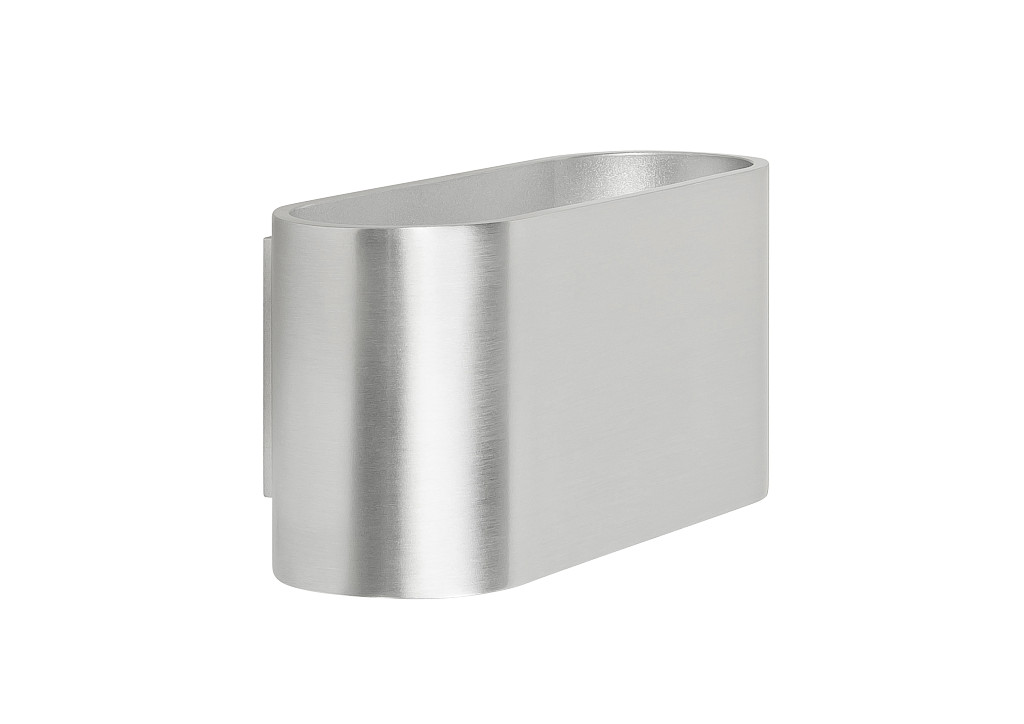 Wandlamp Oval aluminium met 1 lichtpunt . Deze lamp wordt geleverd zonder lichtbron(nen). Als lichtbron kan zowel een halogeen- als LED lamp worden gebruikt. Dimbaar via externe dimmer.