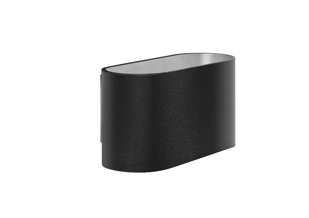 Wandlamp Oval zwart met 1 lichtpunt . Deze lamp wordt geleverd zonder lichtbron(nen). Als lichtbron kan zowel een halogeen- als LED lamp worden gebruikt. Dimbaar via externe dimmer.