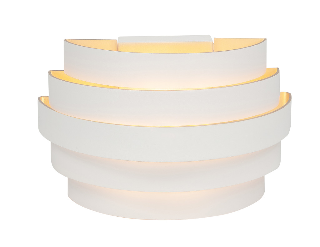Wandlamp Scudo wit + goud met 1 lichtpunt . Deze lamp wordt geleverd zonder lichtbron(nen). Als lichtbron kan zowel een gloei- als LED lamp worden gebruikt. Dimbaar via externe dimmer.