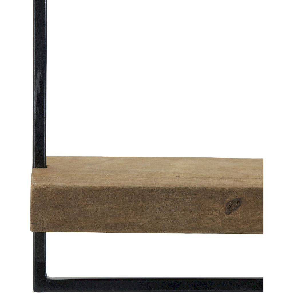 Model Valleve bestaat uit een serie stoere wandplanken gemaakt van hout in de kleur weather barn en voorzien van een metalen frame.